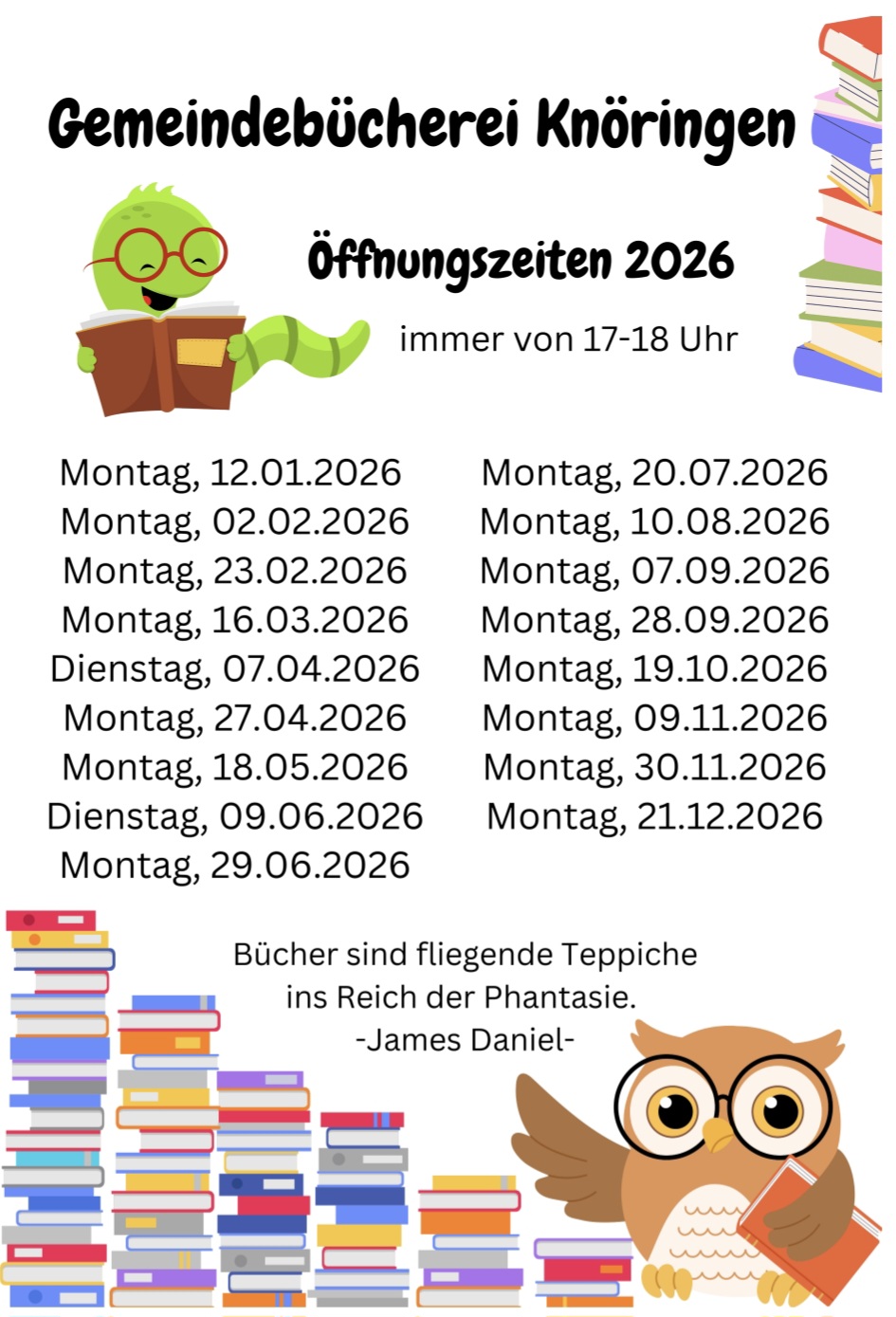 Wer Interesse hat, kann einfach während der Öffnungszeiten in der Gemeindebücherei vorbeischauen und sich einen kostenlosen Leseausweis ausstellen lassen. Dieser berechtigt die Medien für zwei Wochen auszuleihen.