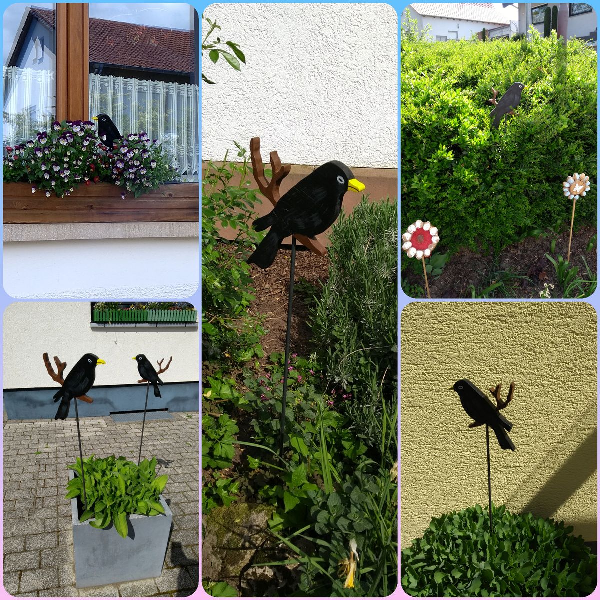 Immer mehr Knöringer Amseln verschönern unseren Ort. Sie sind beispielsweise in den Vorgärten, Blumenkübeln oder Blumenkästen zu finden. Wer sich ebenfalls noch ein Vögelchen nach Hause holen möchte, darf sich gerne eine Amsel bei Ortsbürgermeister Dieter Ditsch bestellen. Die große Variante gibt es für 7€, die Kleinen für 5€. Der Erlös kommt einem guten Zweck zu.